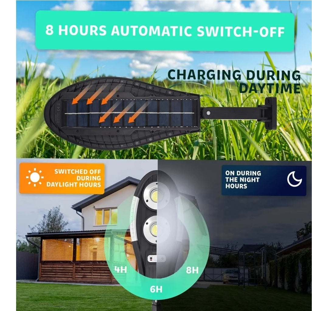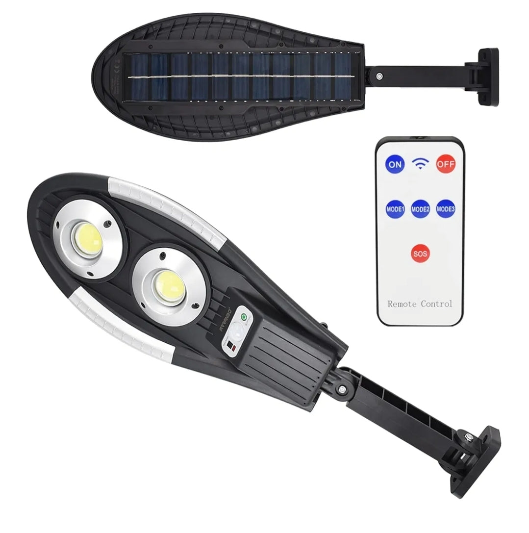 Faro Stradale, Lampione Solare LED Esterno con Pannello Solare, Sensore Crepuscolare e di Movimento, Luce Fredda 6500 K, Telecomando, 3 Modalità, impermeabile IP65 (LAN7, 36W)